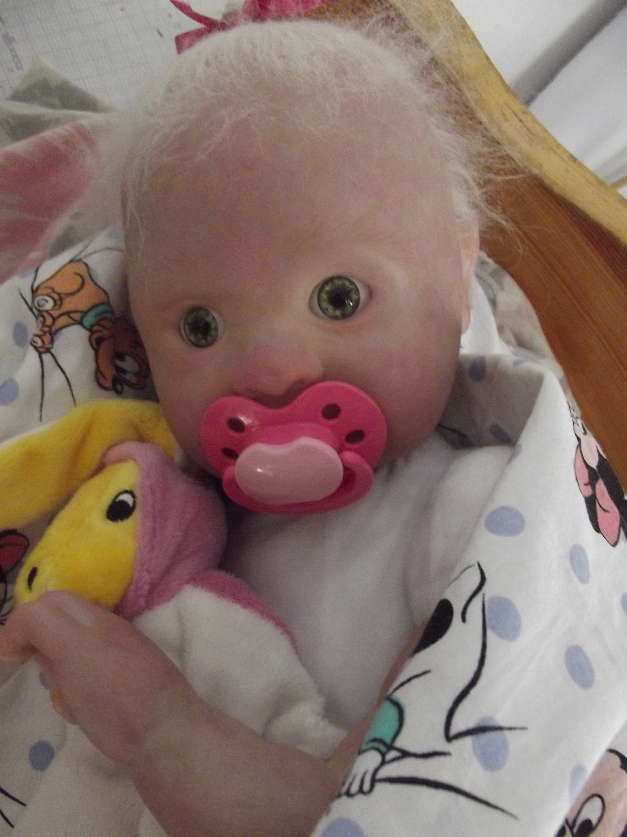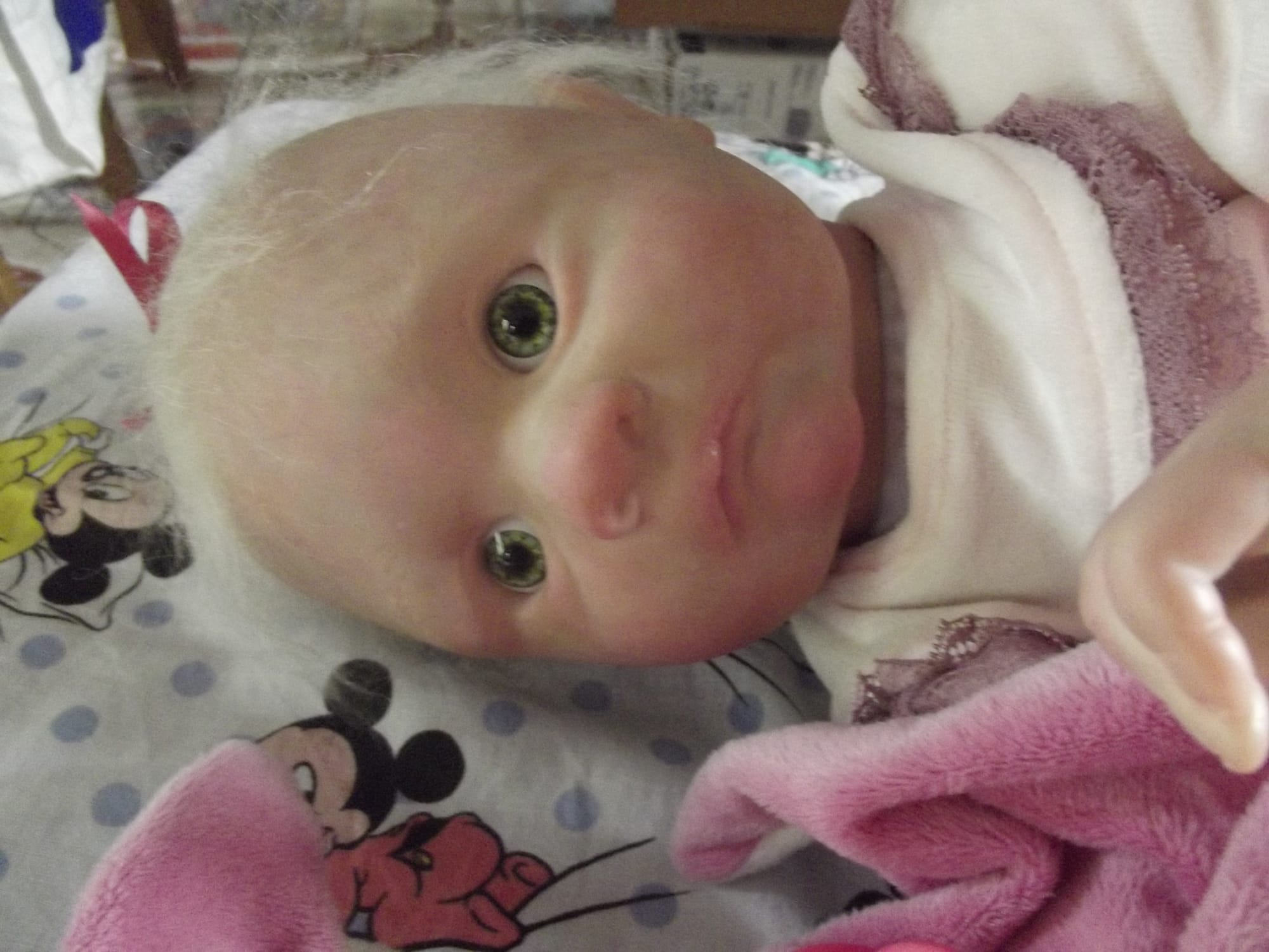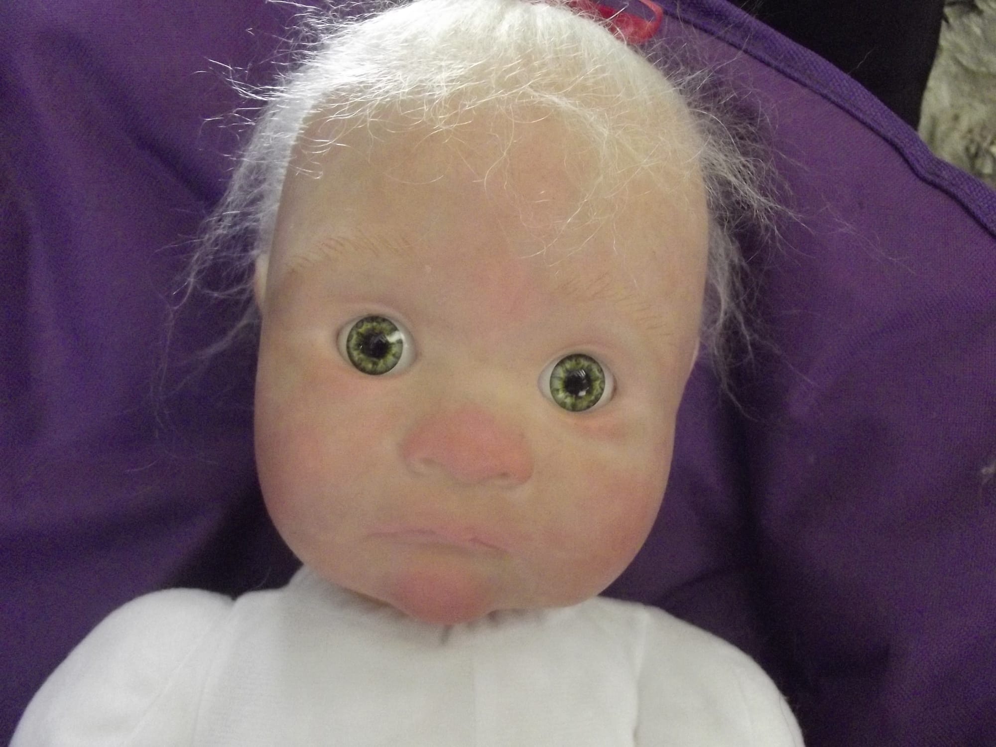 J'ai fait le rooting avec des aiguilles de 42, les cils sont implantés avec une aiguille de 43, le lestage est fait avec des granulats pour les membres, des billes de verre pour le corps et de la bourre hypoallergénique.