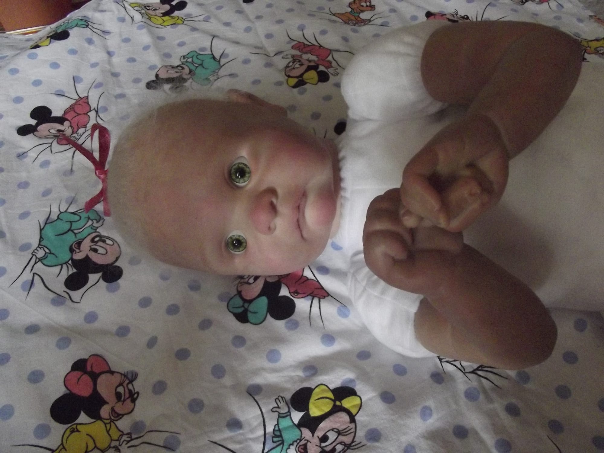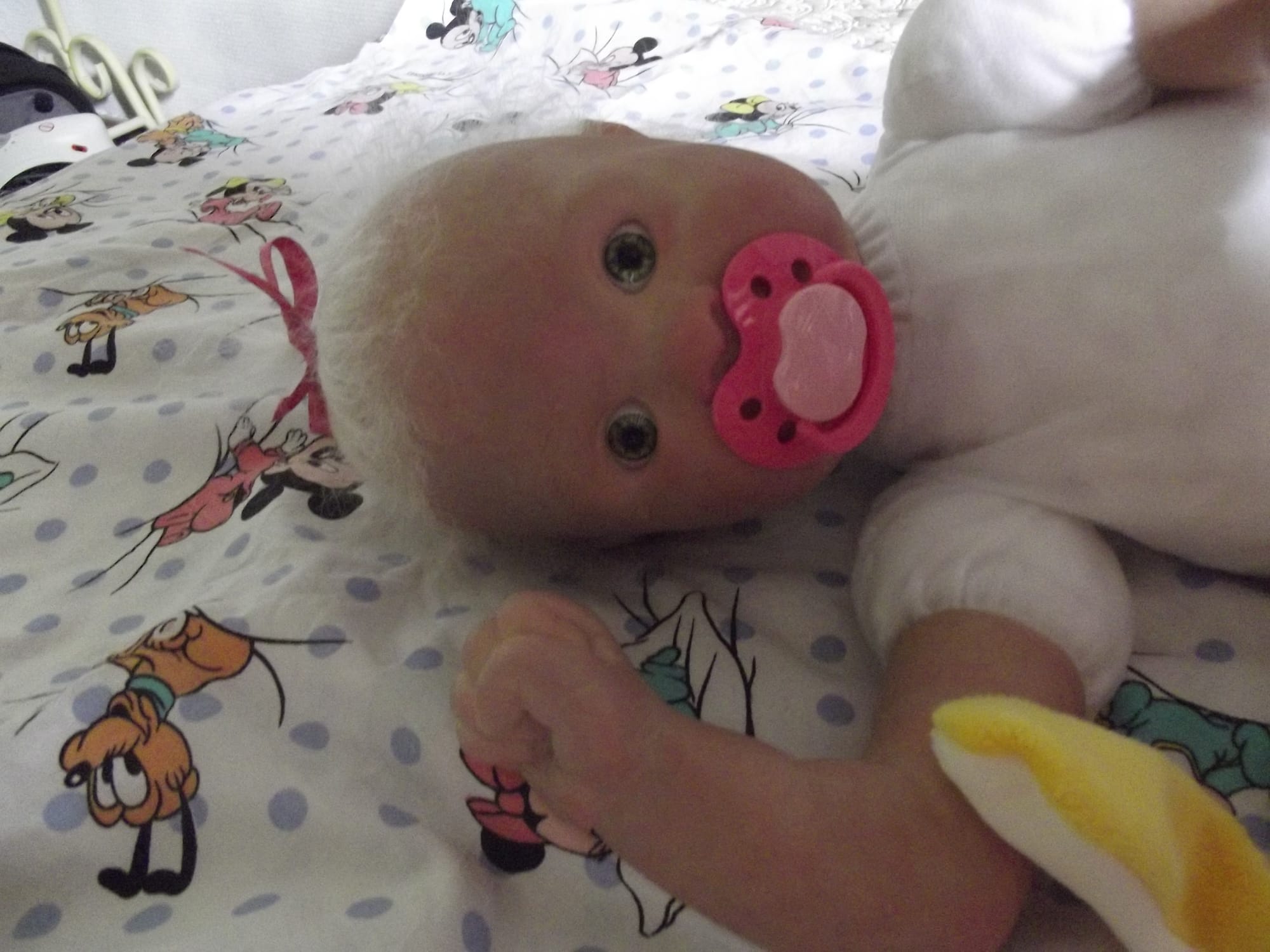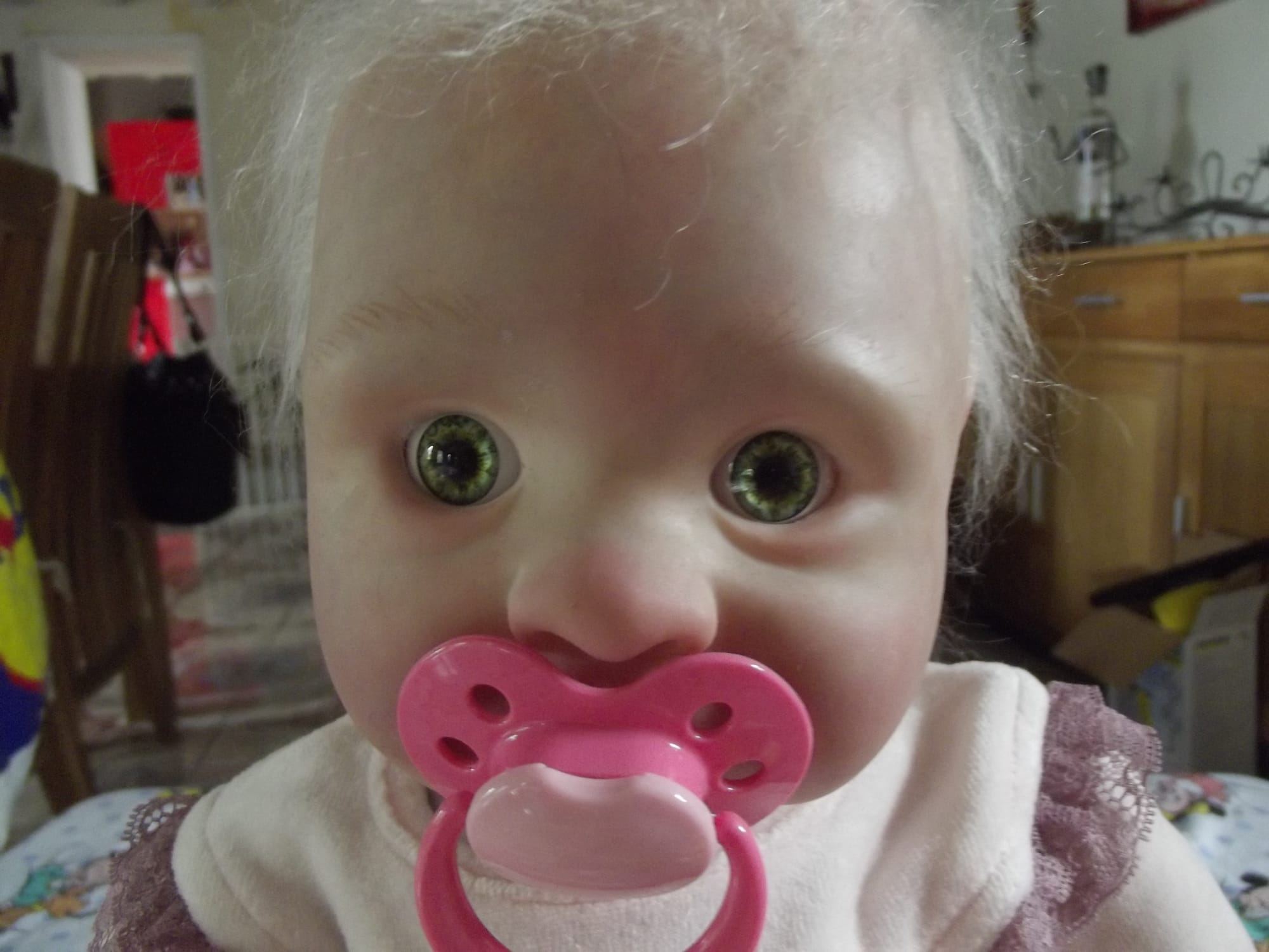 J'ai fait le rooting avec des aiguilles de 42, les cils sont implantés avec une aiguille de 43, le lestage est fait avec des granulats pour les membres, des billes de verre pour le corps et de la bourre hypoallergénique.