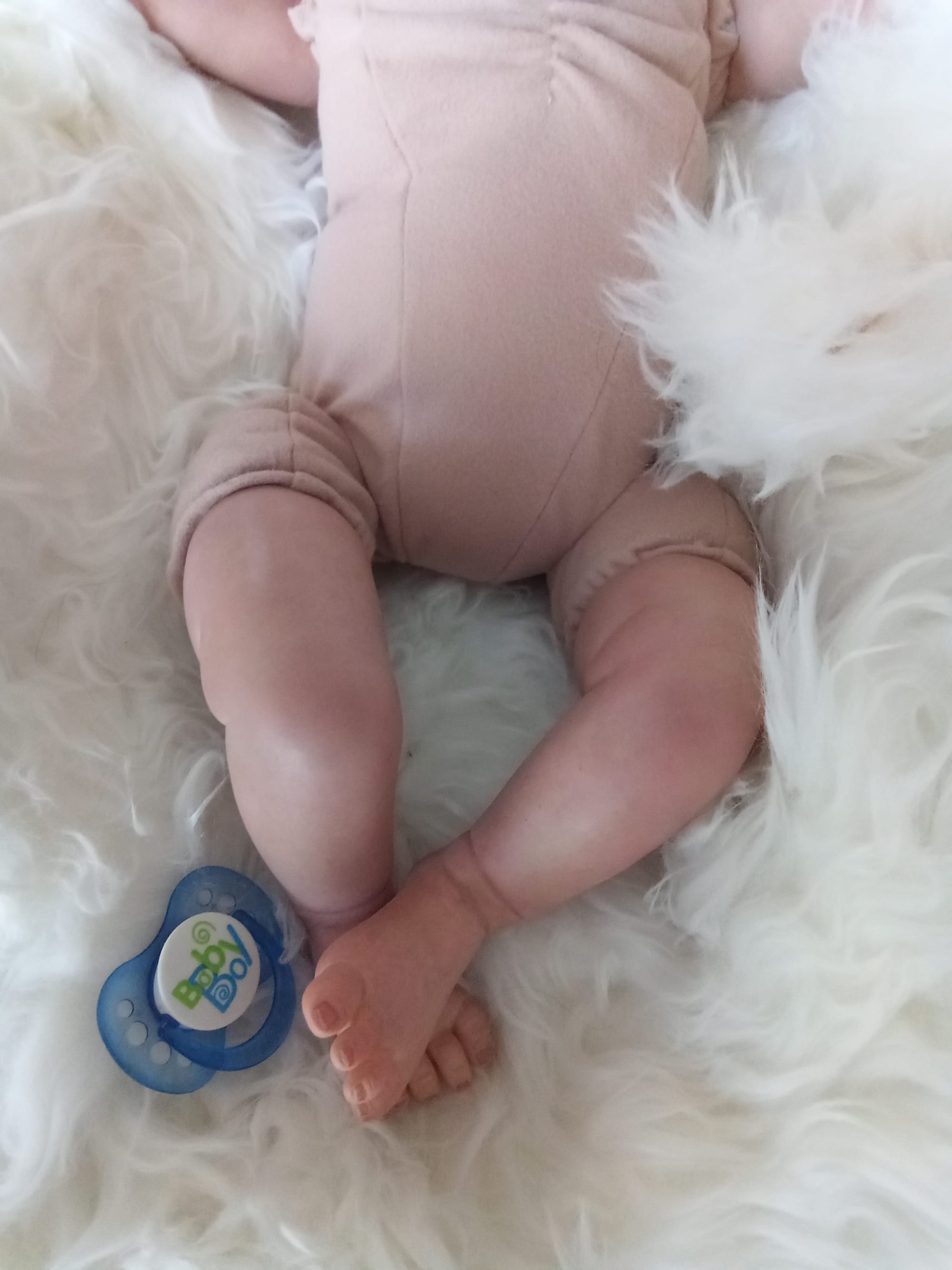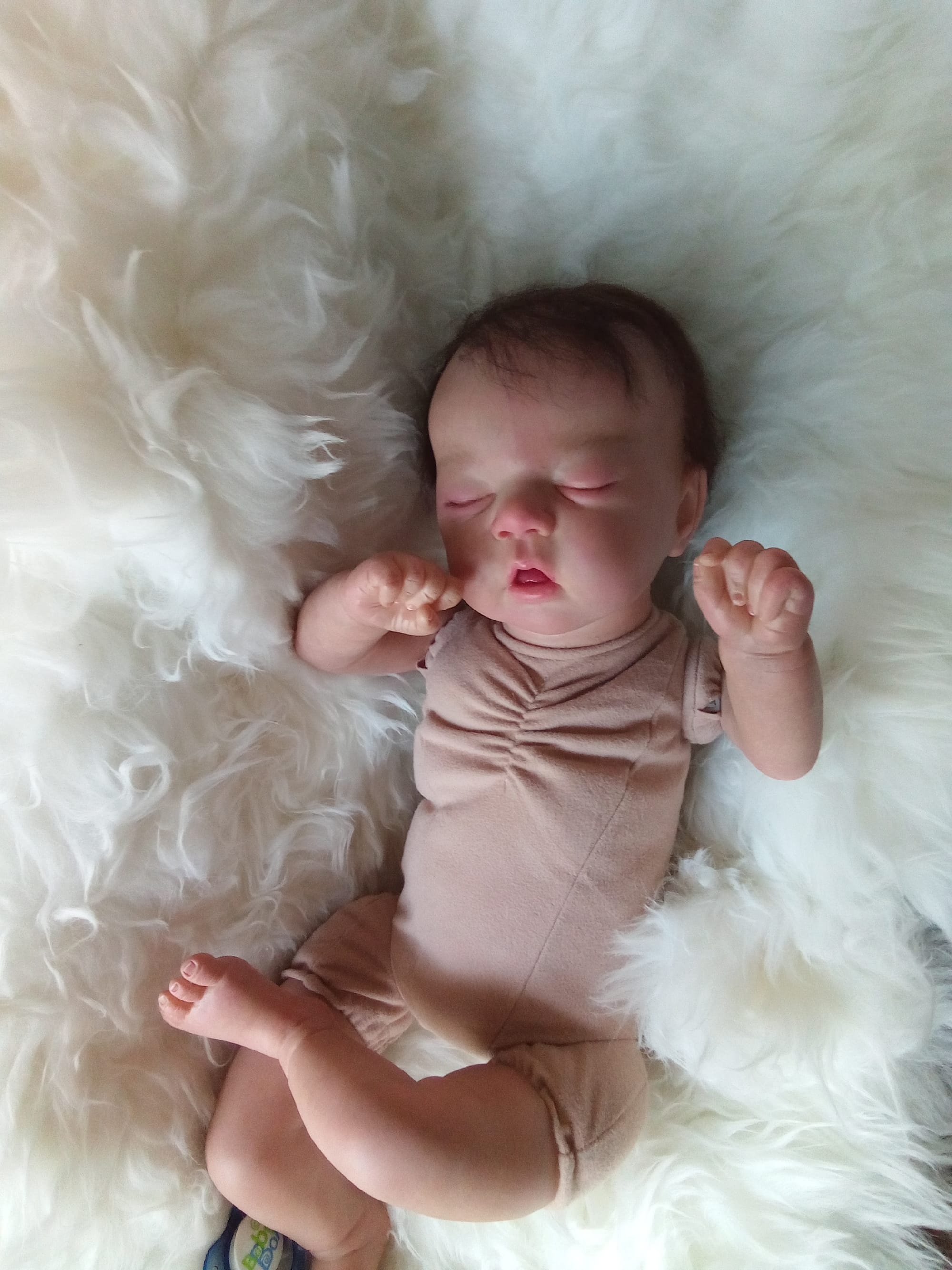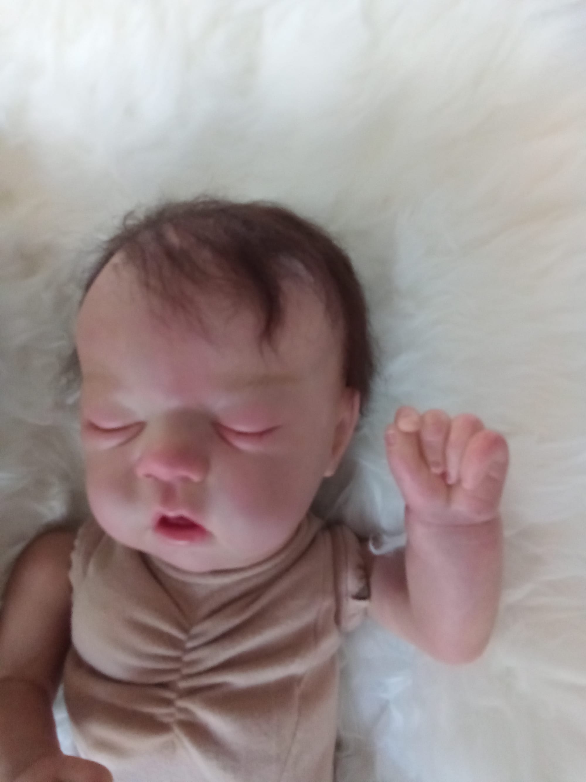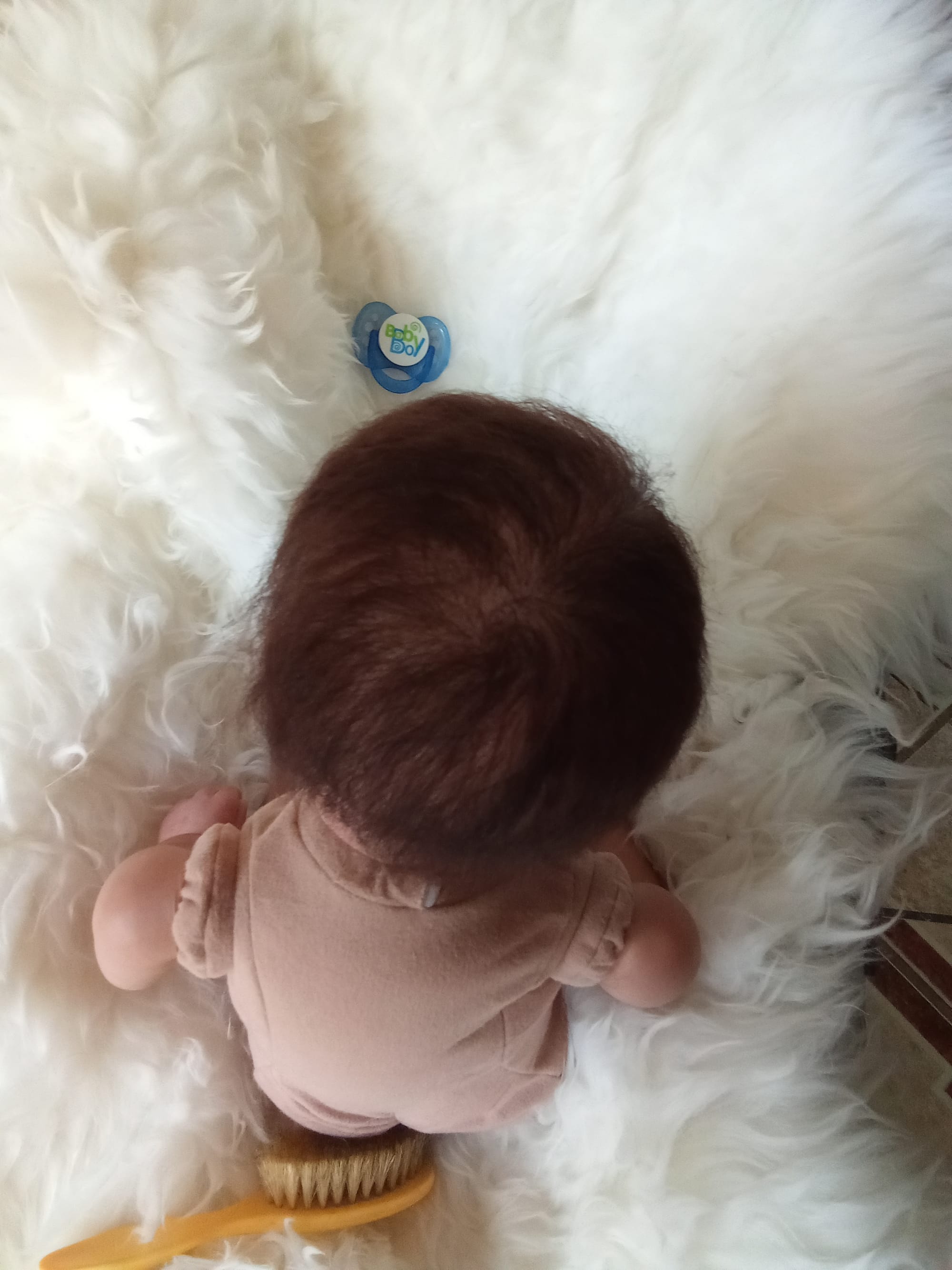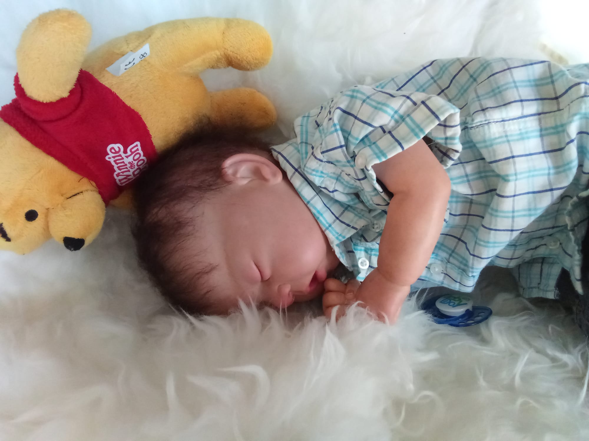 Je vous présente Raphaël du kit Charlee de Sandy Faber, gravure sur la nuque. Il mesure 50 CMS et pèse 1kg 560. Le rooting est fait avec des aiguilles de 46 et du mohair Susan Nagel, peinture acrylique, granulat de chez puppen traumland pour les membres,billes de verre de chez puppen traumland pour le corps et la tête et bourre hyppoallergenique .Certificat d'authenticité fourni. Il viendra chez vous avec sa tenue, son doudou et des petites surprises.